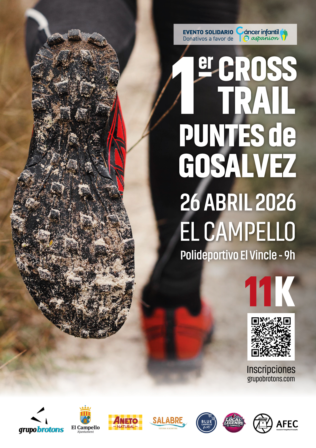 El próximo 26 de abril celebramos la primera edición del Cross Trail Puntas de Gosálvez – El Campello, una nueva prueba de 11 kilómetros que nace con el objetivo de convertirse en una cita fija dentro del calendario de carreras de la provincia. La carrera, organizada por Grupo Brotons con la colaboración del Ayuntamiento de El Campello y su Concejalía de Deportes, propone a los corredores descubrir uno de los entornos naturales más singulares del municipio a través de un recorrido de Trail accesible y atractivo.