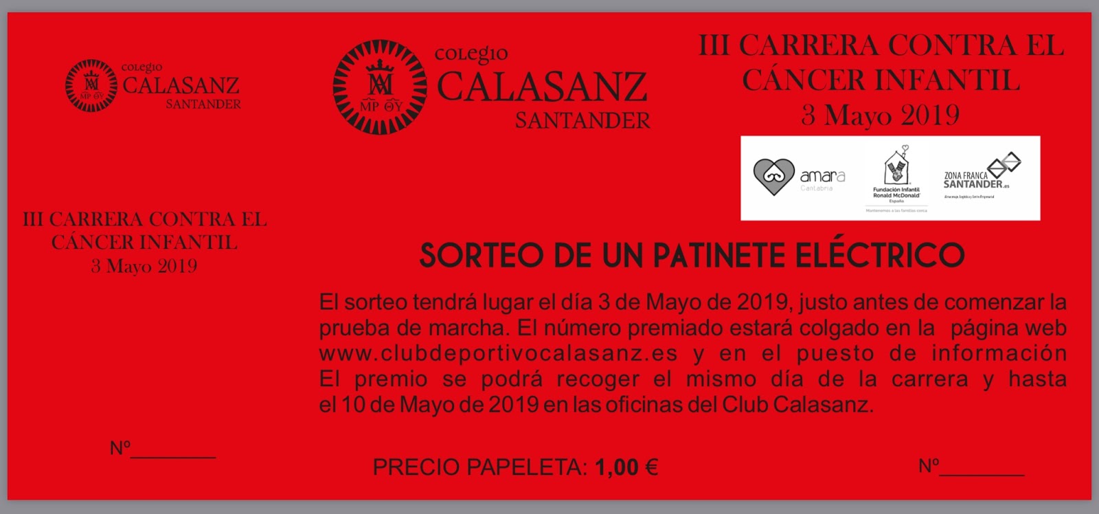 Los números ganadores se harán públicos en la web del Club Calasanz y en el puesto de información de la prueba.