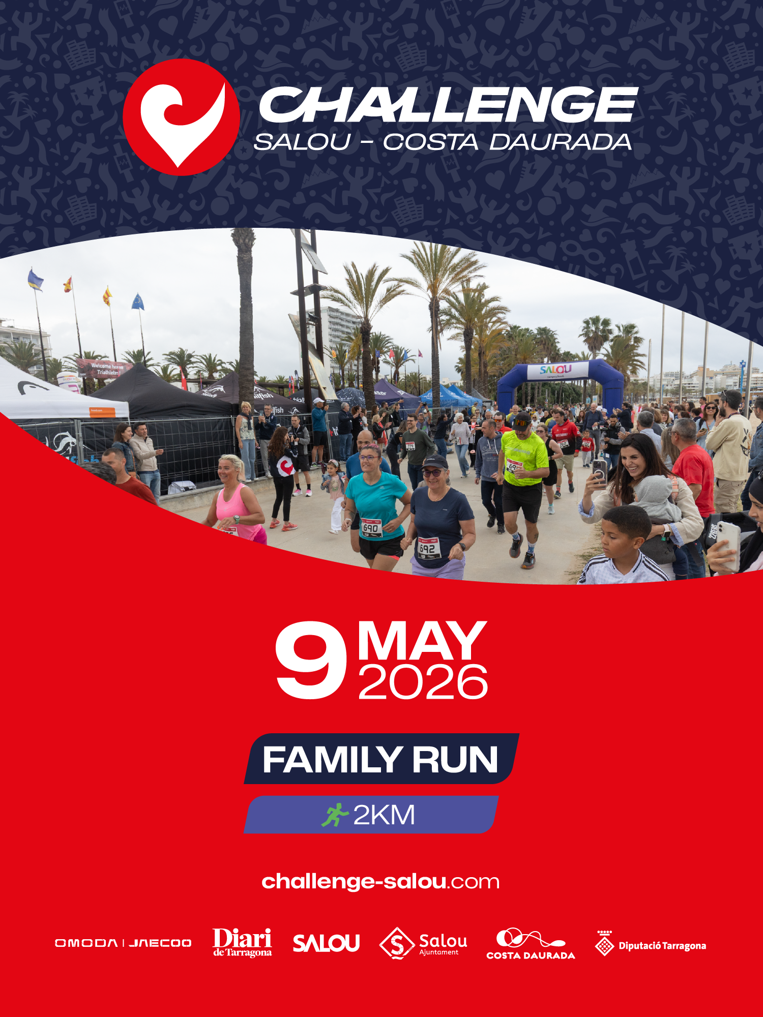 El sábado 9 de mayo a las 18:45h, en la Plaza de las Comunidades Autónomas de Salou, vuelve la Family Run (2K), una carrera abierta a todas las edades para disfrutar del deporte, del ambiente Challenge y de una experiencia inolvidables.