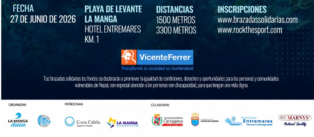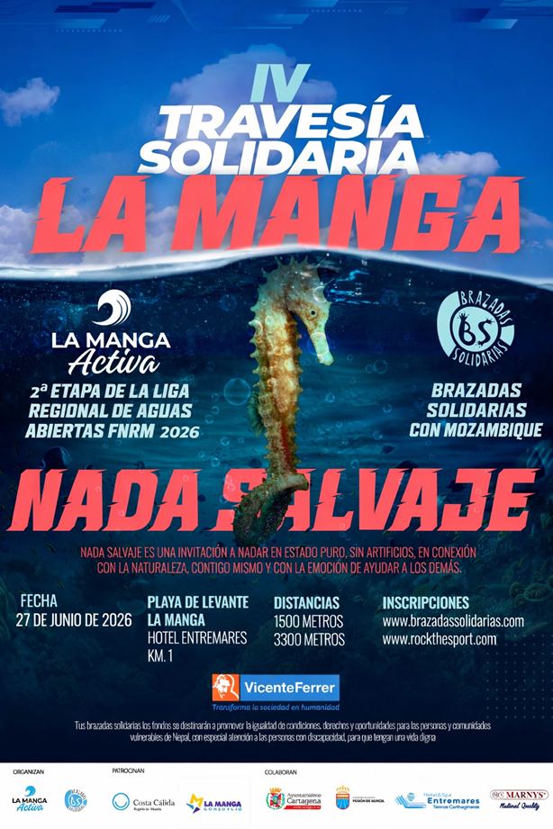 La IV Travesía solidaria de La Manga en Cartagena es una prueba dentro del calendario de Brazadas Solidarias, con el apoyo de la Federación Murciana de Natación, Consorcio La Manga y Ayuntamiento de Cartagena.